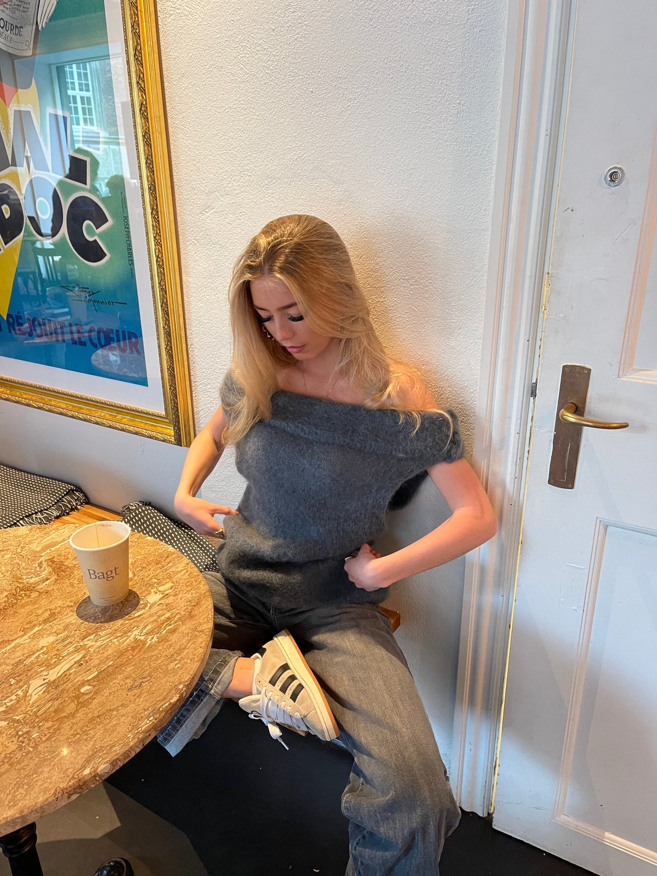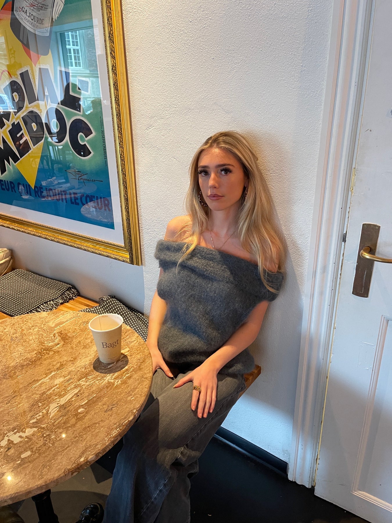 The Esme blouse is styled with a folded neckline that can be worn off the shoulder or adjusted higher for a different look. Its relaxed silhouette makes it easy to pair with jeans or skirts, offering balance between casual and styled outfits.