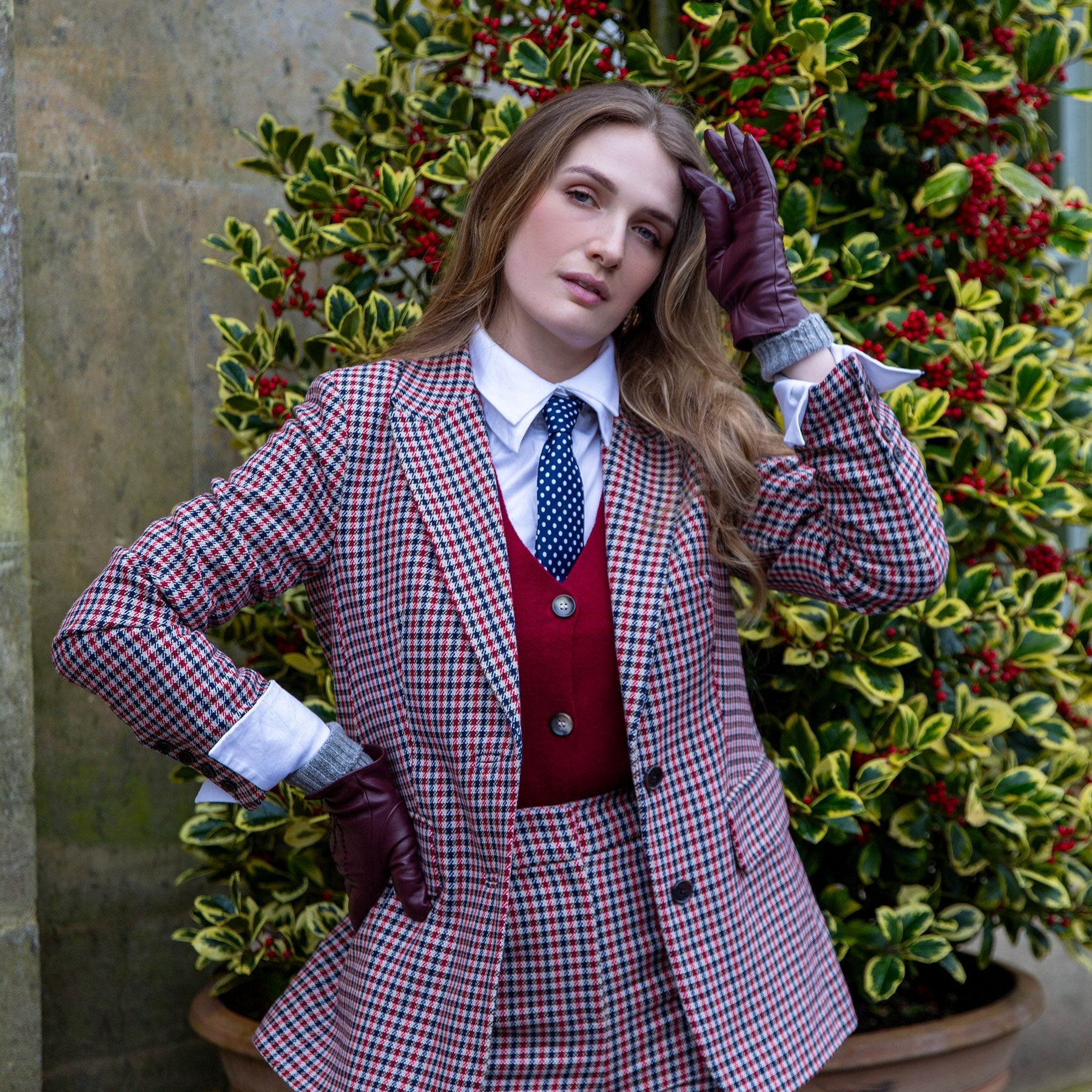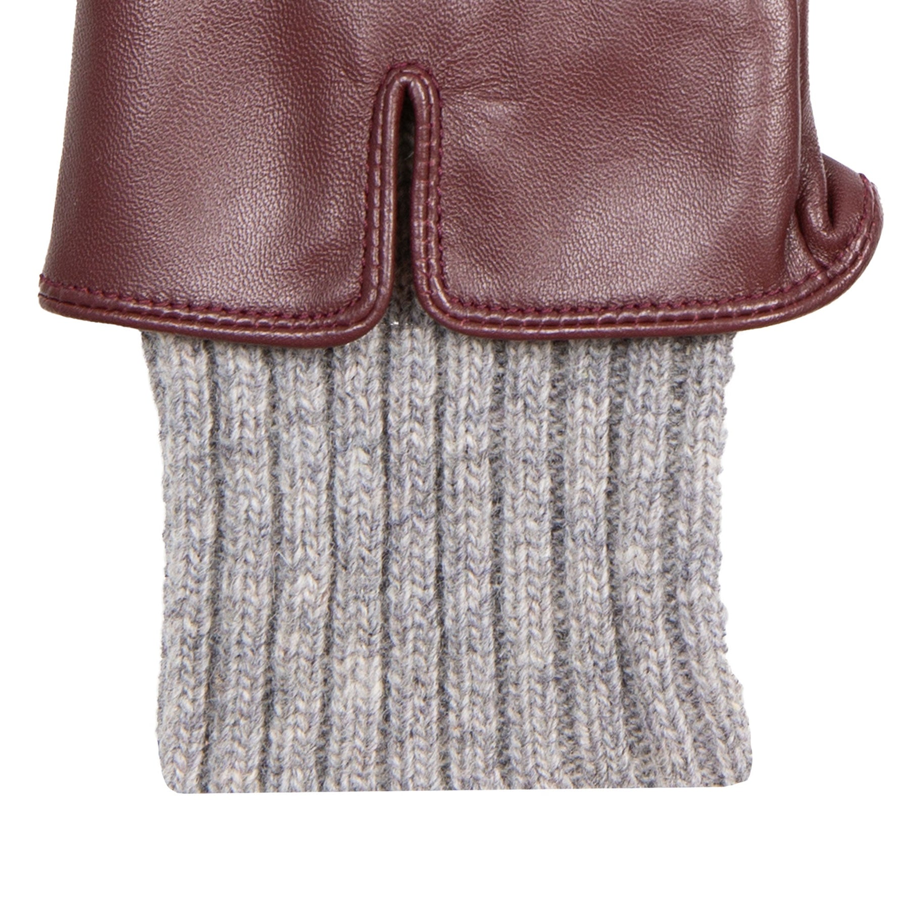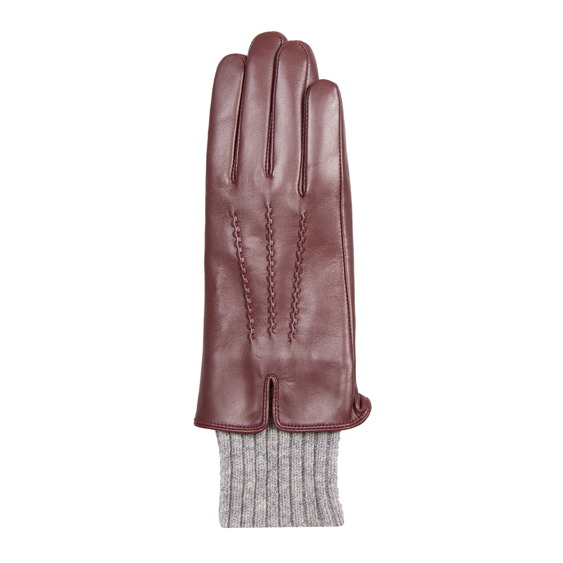 These women’s gloves feature a sleek burgundy finish with three-point stitched detailing for a refined touch. The ribbed knit cuffs extend beyond the wrist, keeping cold air out while adding subtle contrast. A soft wool-blend lining provides insulation throughout, making them a reliable choice for winter wear. With a streamlined fit and mid-arm length, these gloves pair easily with both coats and lighter layers.
