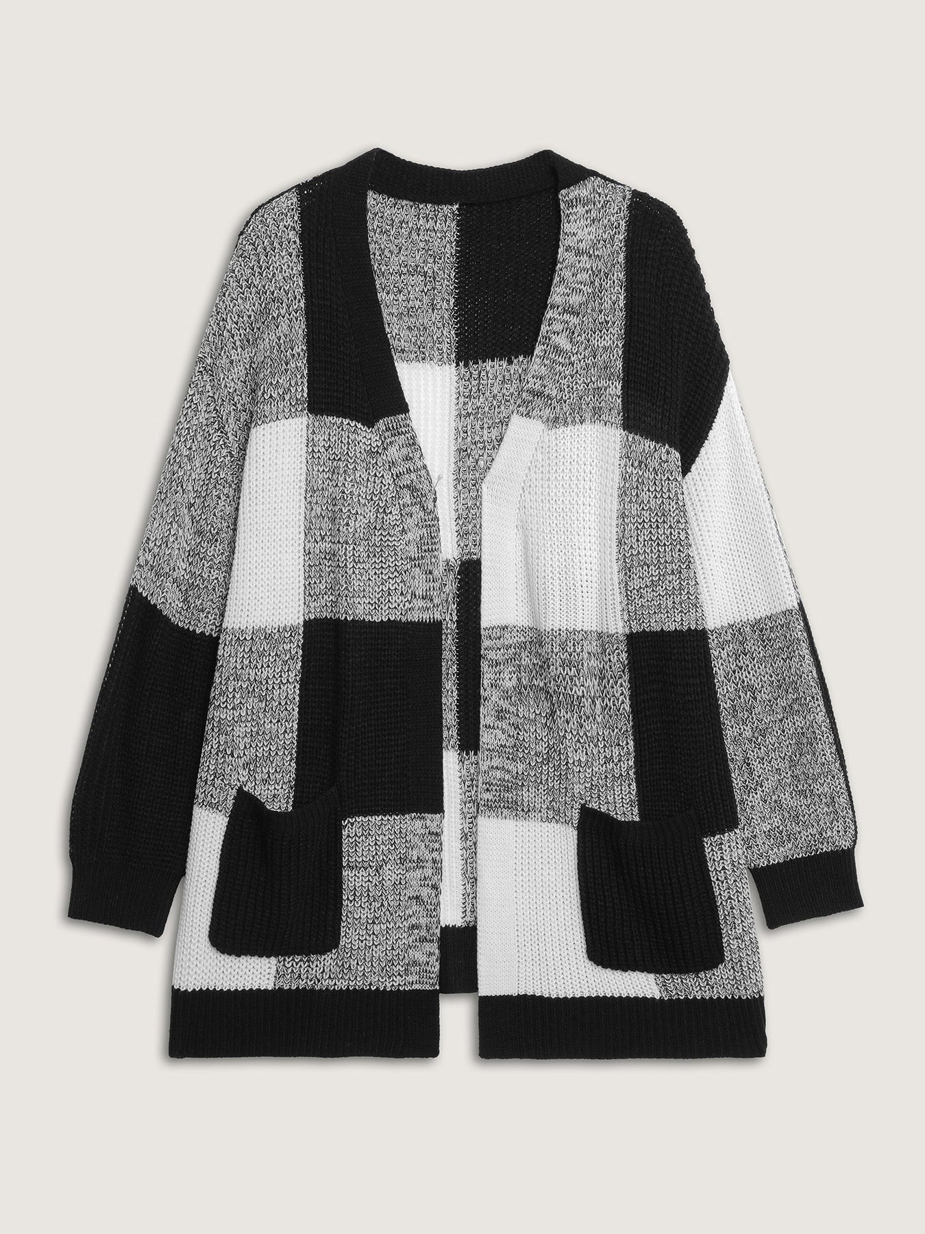 This women’s color block cardigan brings modern elegance to classic comfort. Crafted from a soft, chunky knit, it features an open-front design that’s perfect for layering over any outfit. The oversized check pattern creates a striking visual contrast, while the relaxed fit and front pockets add effortless wearability. Whether paired with jeans for a casual day out or dressed up for evening warmth, this cardigan is a Pinterest-perfect statement piece for every season.