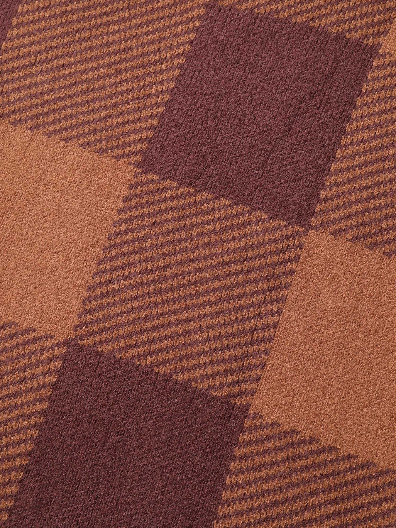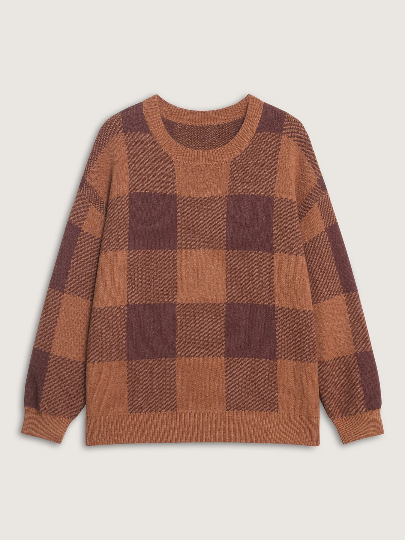 This women’s plaid knit sweater combines classic charm with effortless comfort. Featuring a warm mix of brown tones in a timeless check pattern, it’s designed with a relaxed fit that drapes beautifully on any silhouette. The soft knit texture provides all-day coziness, while the ribbed cuffs and hem add structure for a polished finish. Perfect for layering over jeans or skirts, this sweater is your go-to piece for casual days, coffee dates, or fall strolls.