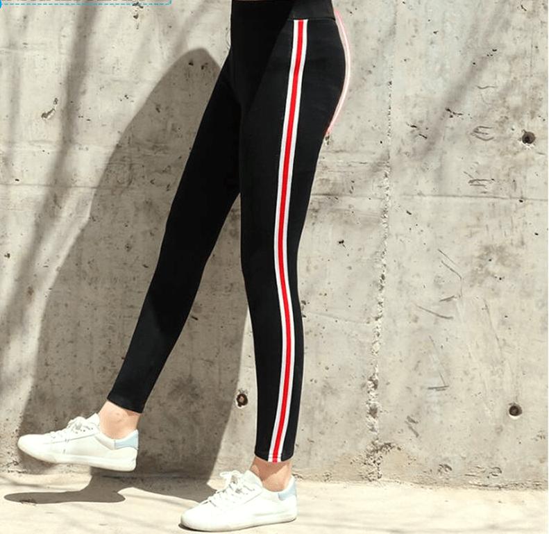 These sports leggings are crafted with a sleek striped design along the sides, giving a flattering elongated look. Made from a soft polyester-cotton blend, they provide ease of movement while maintaining a casual, modern vibe. Perfect for workouts, athleisure styling, or relaxed days on the go.
