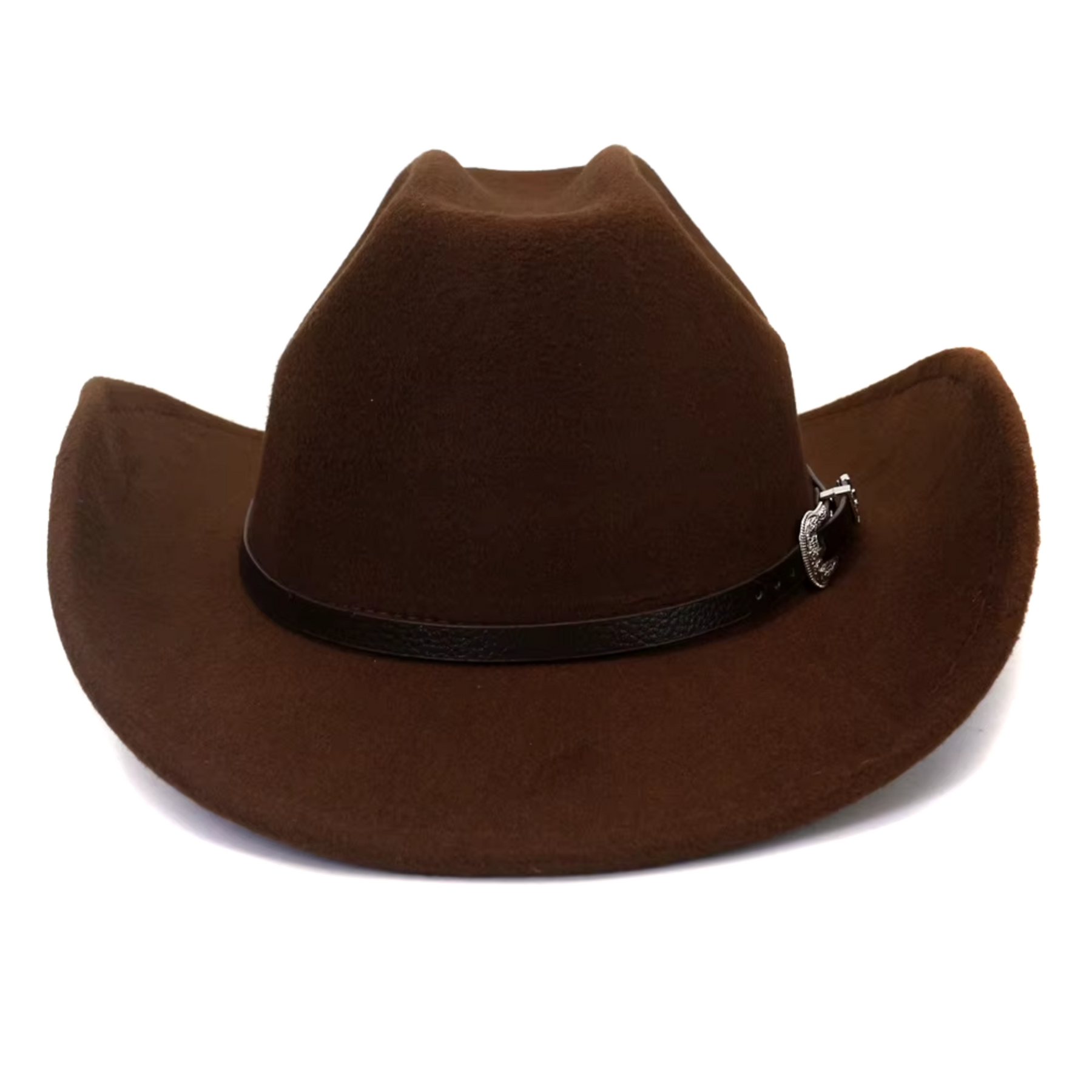 Step into timeless style with this western cowboy felt hat, designed for both enthusiasts and trendsetters. Crafted from a cotton and polyester blend, it delivers structure, durability, and a comfortable fit. The wide brim adds character while providing practical sun coverage, making it perfect for outdoor adventures, festivals, or casual wear. A sleek belt strap with a silver buckle elevates the design, giving it a refined yet rugged finish. Available in multiple colors, this versatile hat is the ultimate accessory for expressing bold, individual style.