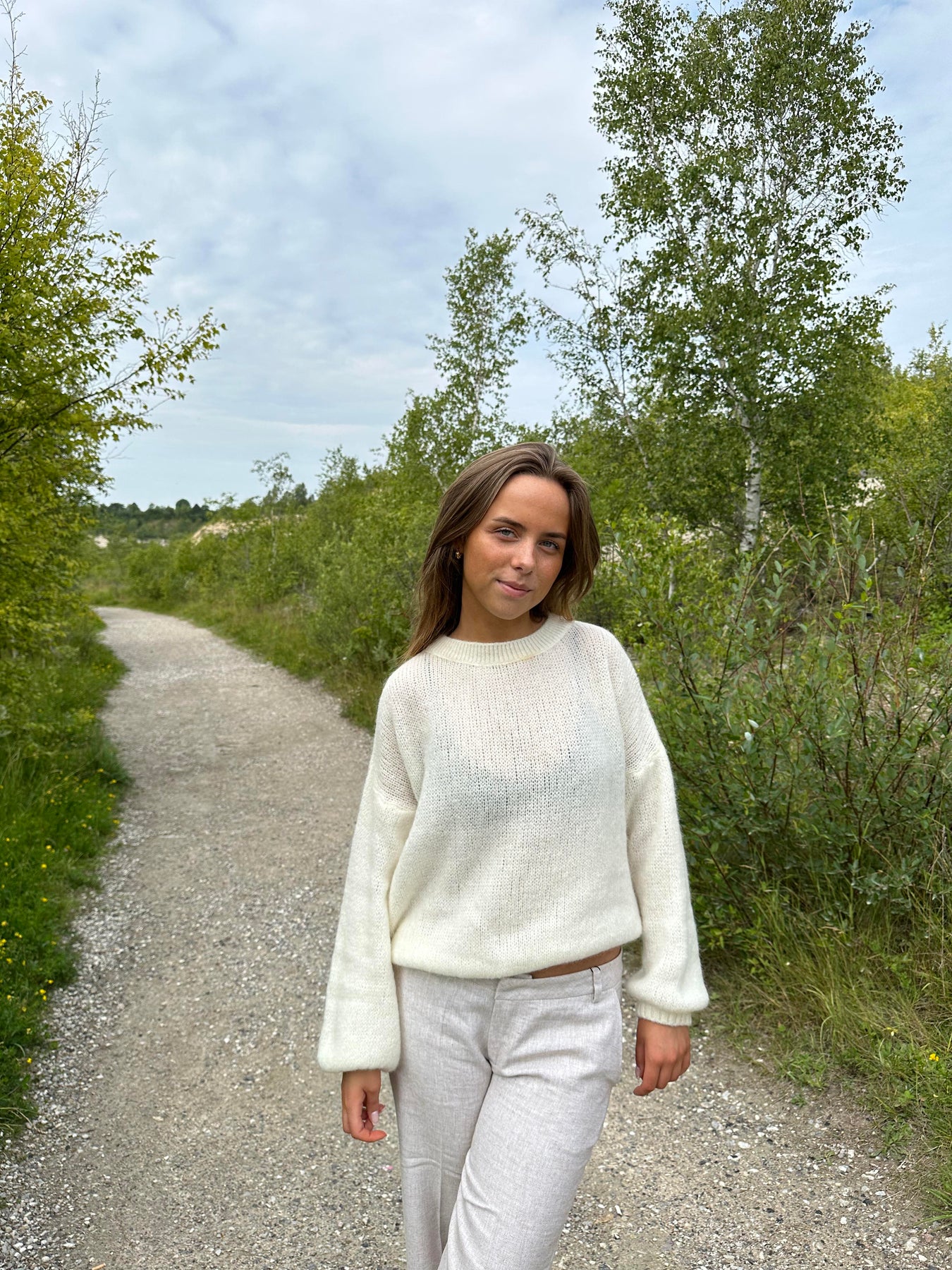 The Blair knit highlights a round neckline combined with voluminous balloon sleeves for a distinctive shape. Its oversized cut creates a statement silhouette, perfect for layering or wearing as a standalone piece.